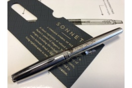 This Fountain Pen is a classic expression of refined style, Sonnet is Parker’s symbol of elegance for everyone. With an array of designs, including the enduring Ciselé pattern, every intricate detail is skillfully executed to bring sophistication to every writing occasion. This product is best suited for people who want to be recognize but not perceived as fancy. Sonnet Stainless Steel CT Fountain Pen is well suited for laser engravings so you can give this pen as a gift for every occasions like Christmas gift or for any anniversary. Every Company can make a realy nice Parker gift out of this for employees, partners or investors.. You can refill this Fountain Pen with Parker Ink cartridges or Parker Ink in bottle. On our website you can find Rollerball Pen and Ballpoint Pen matching the set. Stainless steel finish with a brushed metal effect. Complemented with palladium finish trims and a stainless steel nib. Packaged in a PARKER premium gift box. This Fountain Pen comes with nib size F or M. One ink cartridge included in random blue or black colour and ink converter.