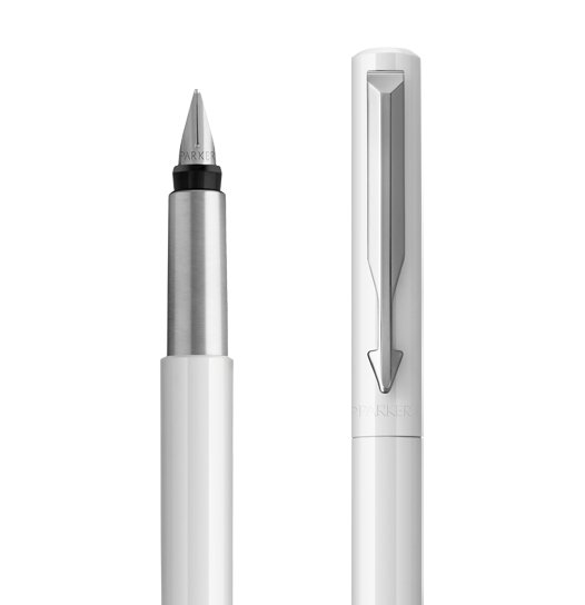 Nowość Parkera. Parker Vector White Fountain Pen. Beautiful white color. The nib is made of stainless steel.