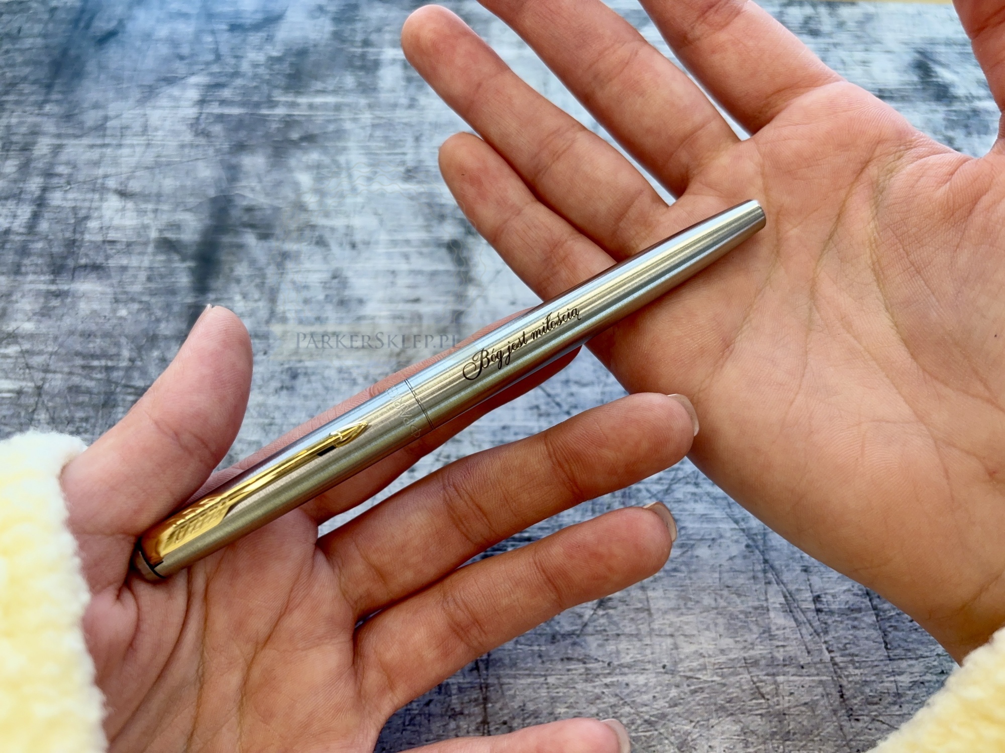 Parker Jotter Stainless Steel Chrome Color Trim GT Fountain Pen + Ballpoint Pen in a Gift Box in suede box pink