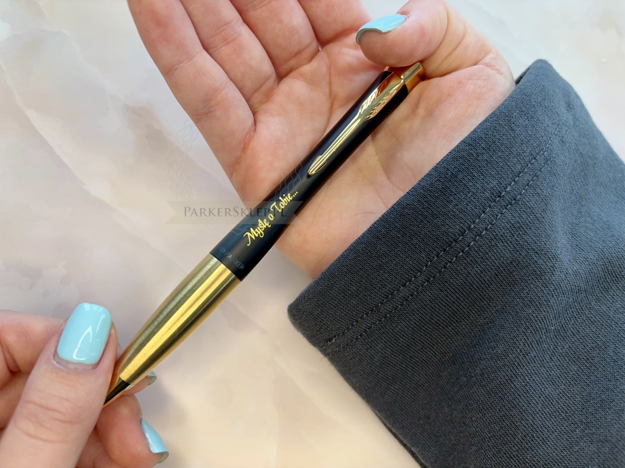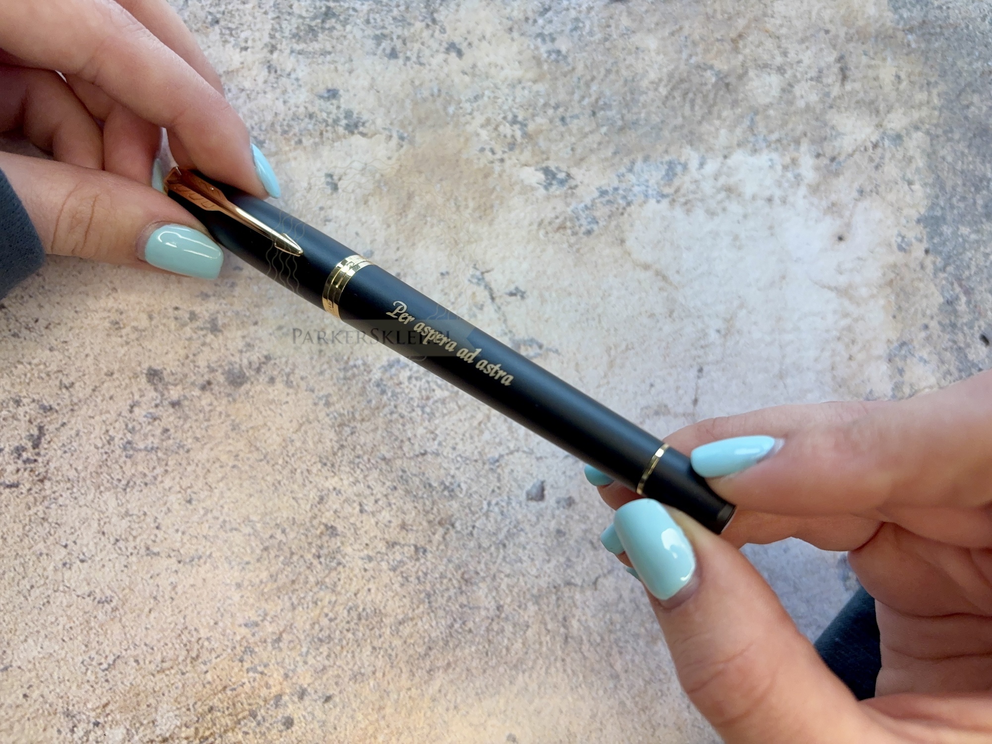 Fountain Pen Eye catching and dynamic, PARKER Urban Fountain Pens deliver a boldly modern look that dares to be noticed. With its curved silhouette, you enjoy a perfectly balanced writing experience that complements your style. This PARKER fountain pen features a muted black lacquer finish accented with striking gold finish trim. The durable nib is crafted from stainless steel and shaped to provide the optimal writing angle. For use with QUINK ink cartridges or convertible to ink bottle filling. Designed with flowing curves and available in a range of finishes, the fine pens inspire confidence behind every word. Durable engraved stainless steel nib delivers a dependable and personal writing experience. Muted black lacquer with a powdery touch complemented by gold finish trim and the signature PARKER arrow clip. Ballpoint pen Muted black lacquer with a powdery touch complemented by gold trim and shell and the signature PARKER arrow clip. Ergonomic shape and weight conform to your natural grasp, providing the perfect weight and balance. The refined twist mechanism paired with the reliable Quinkflow ink ensures smooth, consistent lines everywhere you write.