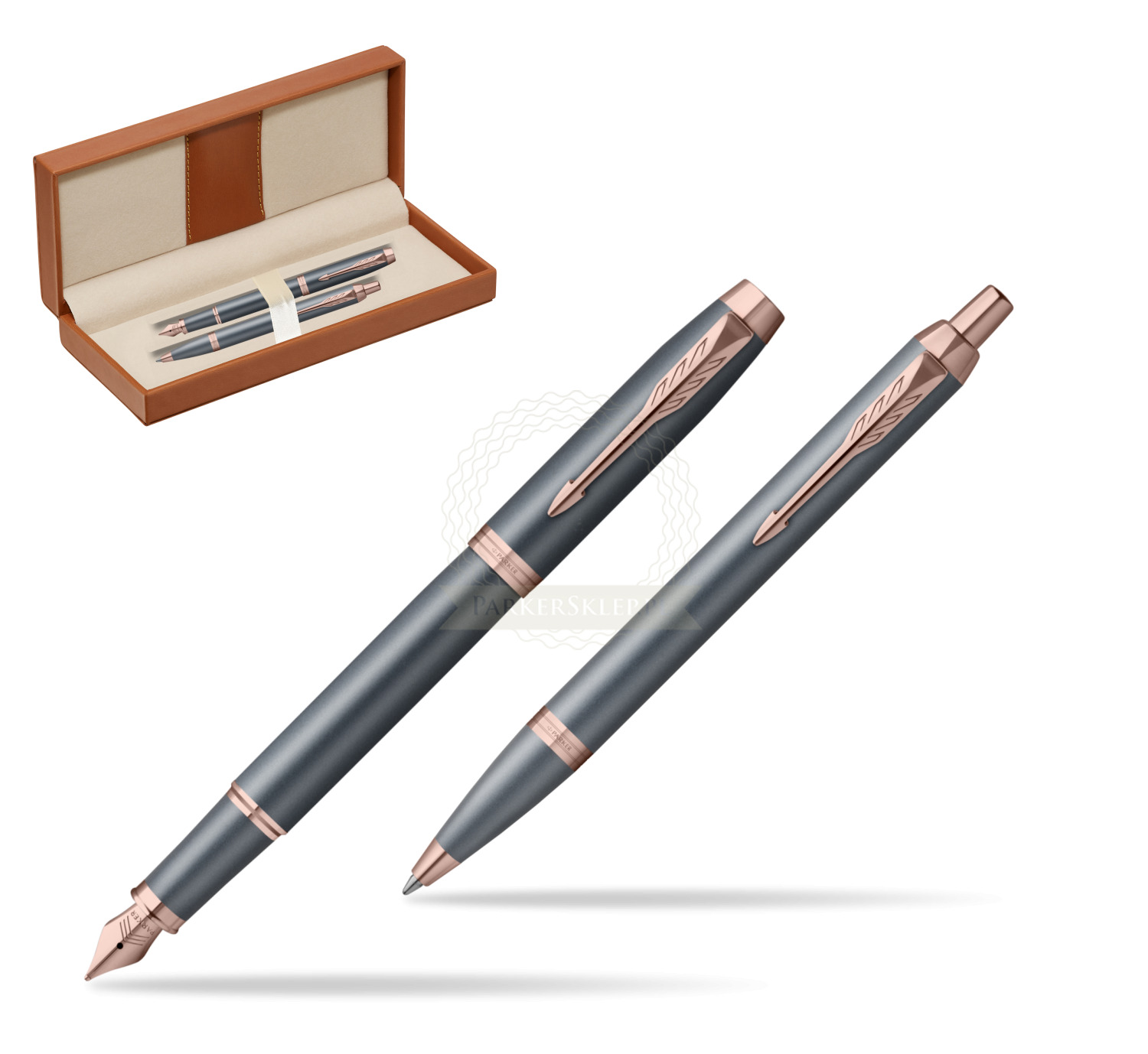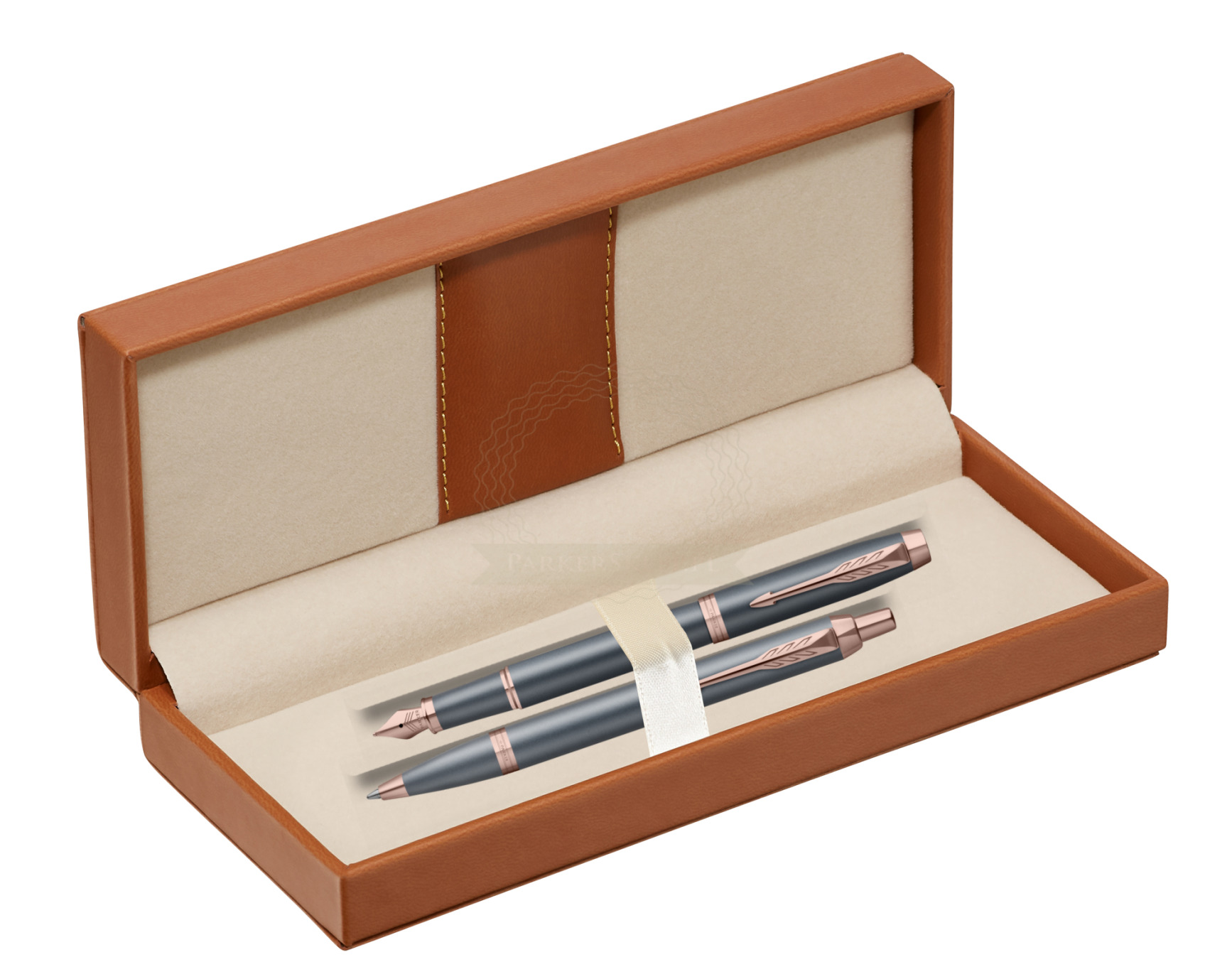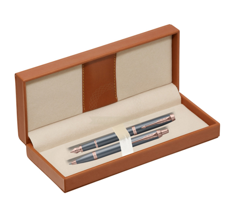 Nutzen Sie jeden Moment der Inspiration mit dem neuesten Begleiter auf Ihrer kreativen Reise – der Parker IM Finishing Touch Kollektion. Ein Premium-Schreibgerät, das für Menschen entworfen wurde, die Schreiben als die höchste Form des Ausdrucks betrachten. Mit ihm wird alltägliches Schreiben zu einem besonderen Erlebnis. Es eignet sich ideal zum Führen eines Tagebuchs sowie zum Festhalten von Gedanken oder Ideen. Jedes Set ist in drei modernen Ausführungen erhältlich, die zarte Satinfarbtöne mit warmen metallischen Elementen verbinden und so Ihre innere Welt inspirieren. Die Kollektion bietet Personalisierung durch drei Schreibvarianten, von denen jede Komfort, Kontrolle und Langlebigkeit bei langen, intensiven Schreibsitzungen gewährleistet. Geliefert werden sie in einer eleganten Geschenkverpackung – eine inspirierende Geschenkidee für einen geliebten Menschen oder für sich selbst. Das tief graublaue Finish wird durch Details in Roségold akzentuiert.