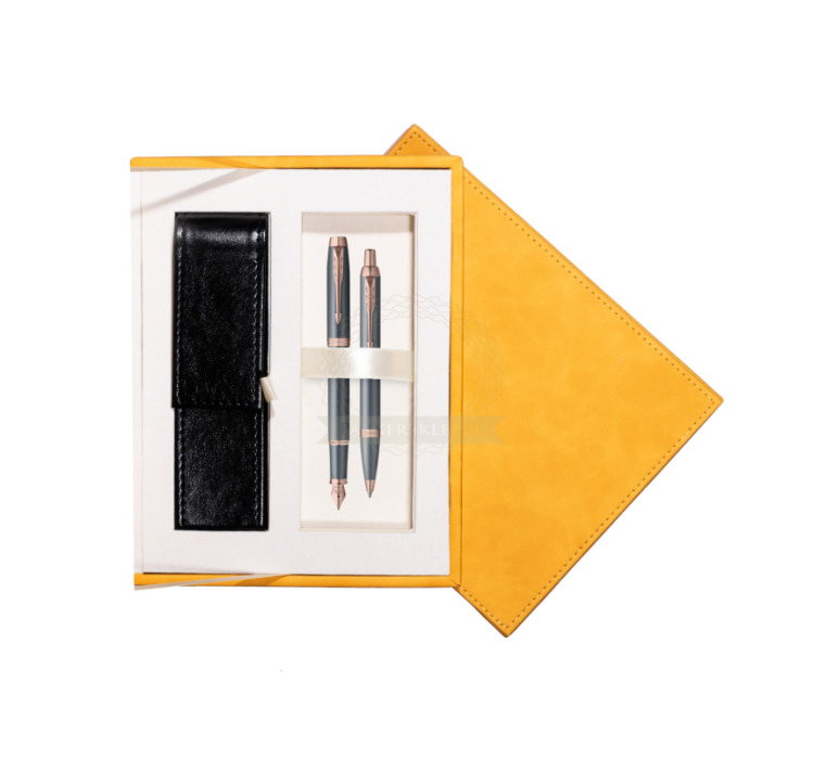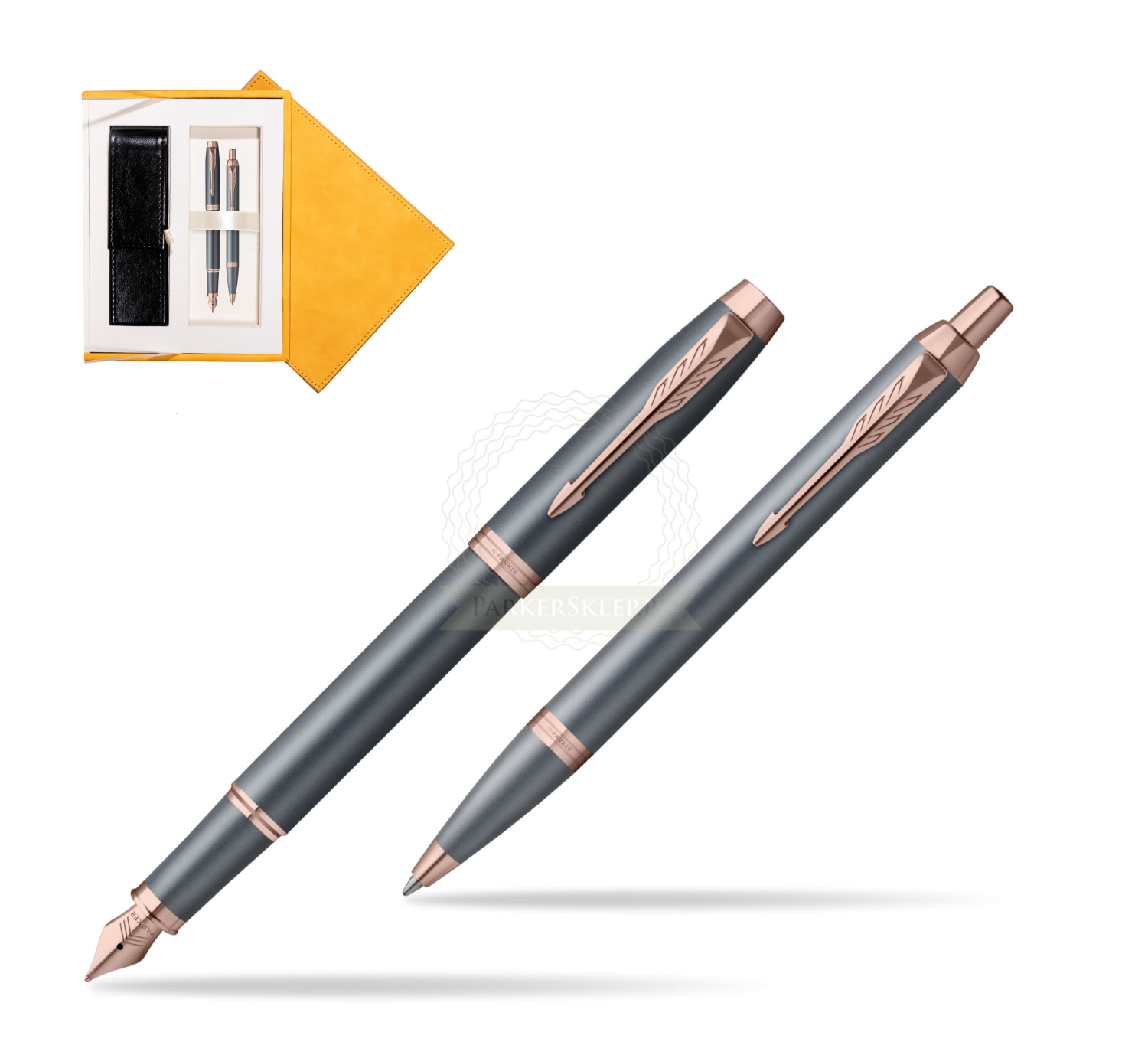 Nutzen Sie jeden Moment der Inspiration mit dem neuesten Begleiter auf Ihrer kreativen Reise – der Parker IM Finishing Touch Kollektion. Ein Premium-Schreibgerät, das für Menschen entworfen wurde, die Schreiben als die höchste Form des Ausdrucks betrachten. Mit ihm wird alltägliches Schreiben zu einem besonderen Erlebnis. Es eignet sich ideal zum Führen eines Tagebuchs sowie zum Festhalten von Gedanken oder Ideen. Jedes Set ist in drei modernen Ausführungen erhältlich, die zarte Satinfarbtöne mit warmen metallischen Elementen verbinden und so Ihre innere Welt inspirieren. Die Kollektion bietet Personalisierung durch drei Schreibvarianten, von denen jede Komfort, Kontrolle und Langlebigkeit bei langen, intensiven Schreibsitzungen gewährleistet. Geliefert werden sie in einer eleganten Geschenkverpackung – eine inspirierende Geschenkidee für einen geliebten Menschen oder für sich selbst. Das tief graublaue Finish wird durch Details in Roségold akzentuiert.