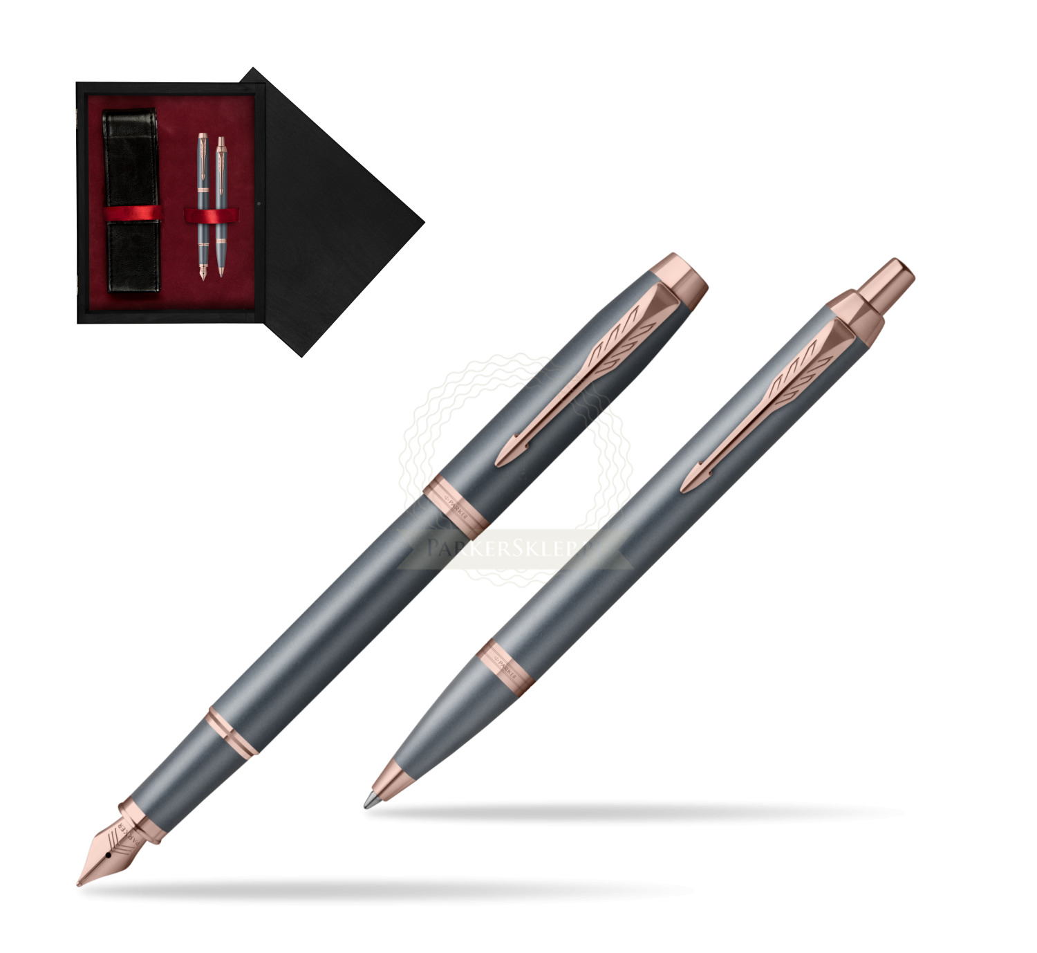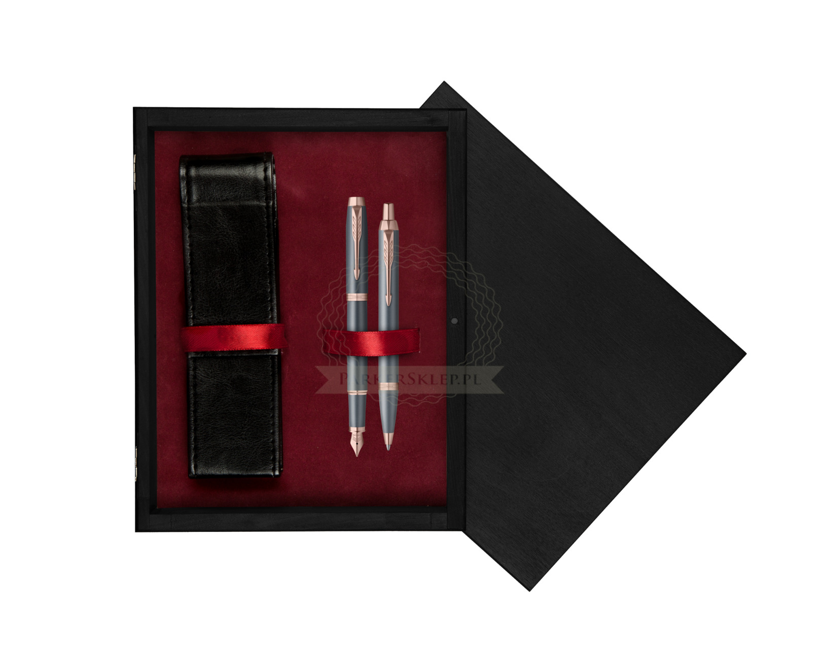 Nutzen Sie jeden Moment der Inspiration mit dem neuesten Begleiter auf Ihrer kreativen Reise – der Parker IM Finishing Touch Kollektion. Ein Premium-Schreibgerät, das für Menschen entworfen wurde, die Schreiben als die höchste Form des Ausdrucks betrachten. Mit ihm wird alltägliches Schreiben zu einem besonderen Erlebnis. Es eignet sich ideal zum Führen eines Tagebuchs sowie zum Festhalten von Gedanken oder Ideen. Jedes Set ist in drei modernen Ausführungen erhältlich, die zarte Satinfarbtöne mit warmen metallischen Elementen verbinden und so Ihre innere Welt inspirieren. Die Kollektion bietet Personalisierung durch drei Schreibvarianten, von denen jede Komfort, Kontrolle und Langlebigkeit bei langen, intensiven Schreibsitzungen gewährleistet. Geliefert werden sie in einer eleganten Geschenkverpackung – eine inspirierende Geschenkidee für einen geliebten Menschen oder für sich selbst. Das tief graublaue Finish wird durch Details in Roségold akzentuiert.