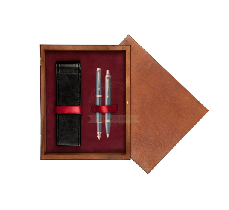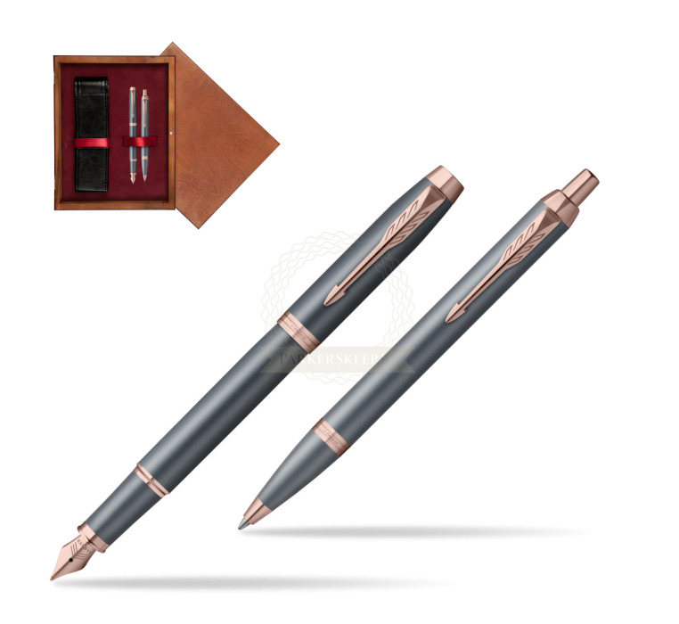 Nutzen Sie jeden Moment der Inspiration mit dem neuesten Begleiter auf Ihrer kreativen Reise – der Parker IM Finishing Touch Kollektion. Ein Premium-Schreibgerät, das für Menschen entworfen wurde, die Schreiben als die höchste Form des Ausdrucks betrachten. Mit ihm wird alltägliches Schreiben zu einem besonderen Erlebnis. Es eignet sich ideal zum Führen eines Tagebuchs sowie zum Festhalten von Gedanken oder Ideen. Jedes Set ist in drei modernen Ausführungen erhältlich, die zarte Satinfarbtöne mit warmen metallischen Elementen verbinden und so Ihre innere Welt inspirieren. Die Kollektion bietet Personalisierung durch drei Schreibvarianten, von denen jede Komfort, Kontrolle und Langlebigkeit bei langen, intensiven Schreibsitzungen gewährleistet. Geliefert werden sie in einer eleganten Geschenkverpackung – eine inspirierende Geschenkidee für einen geliebten Menschen oder für sich selbst. Das tief graublaue Finish wird durch Details in Roségold akzentuiert.