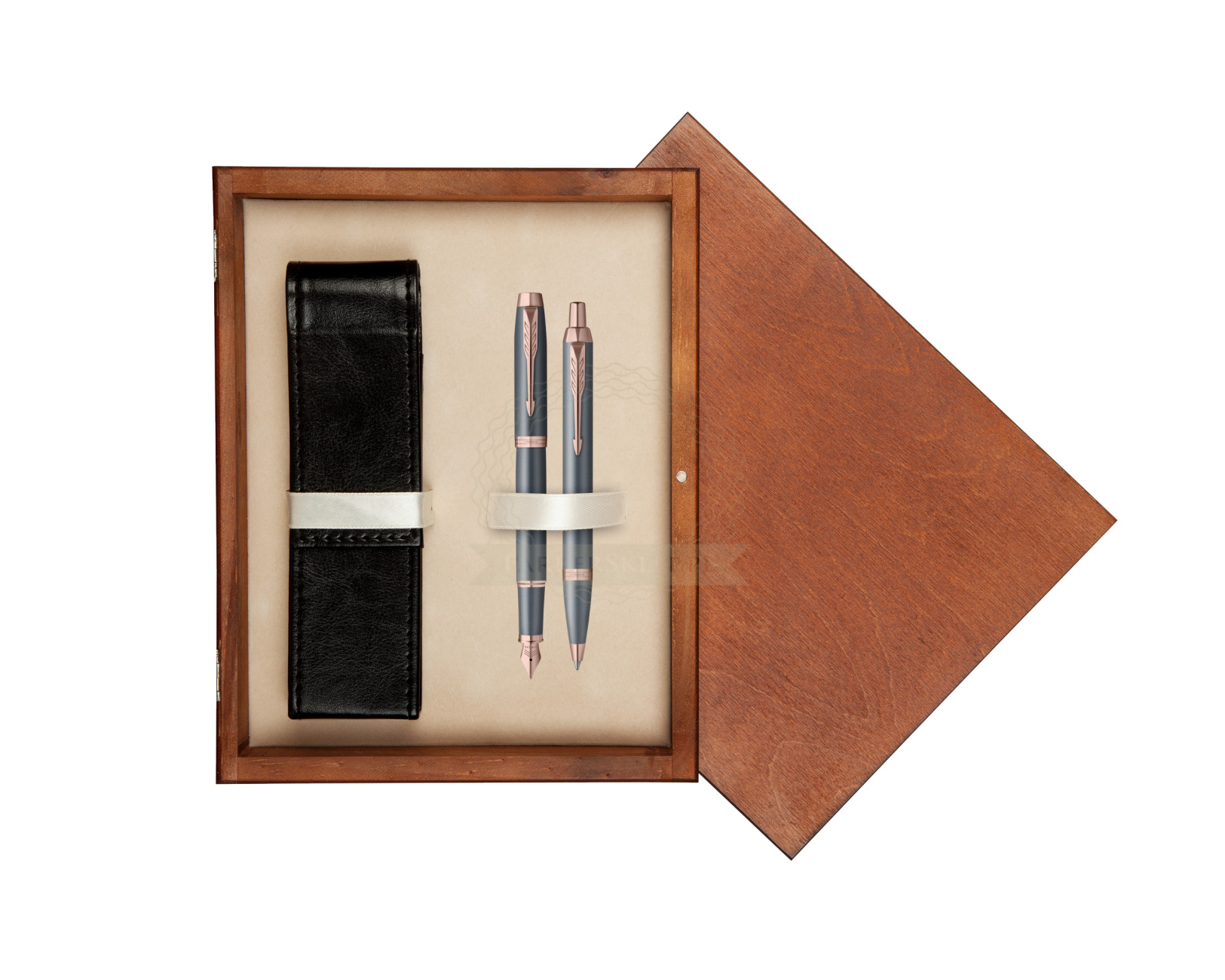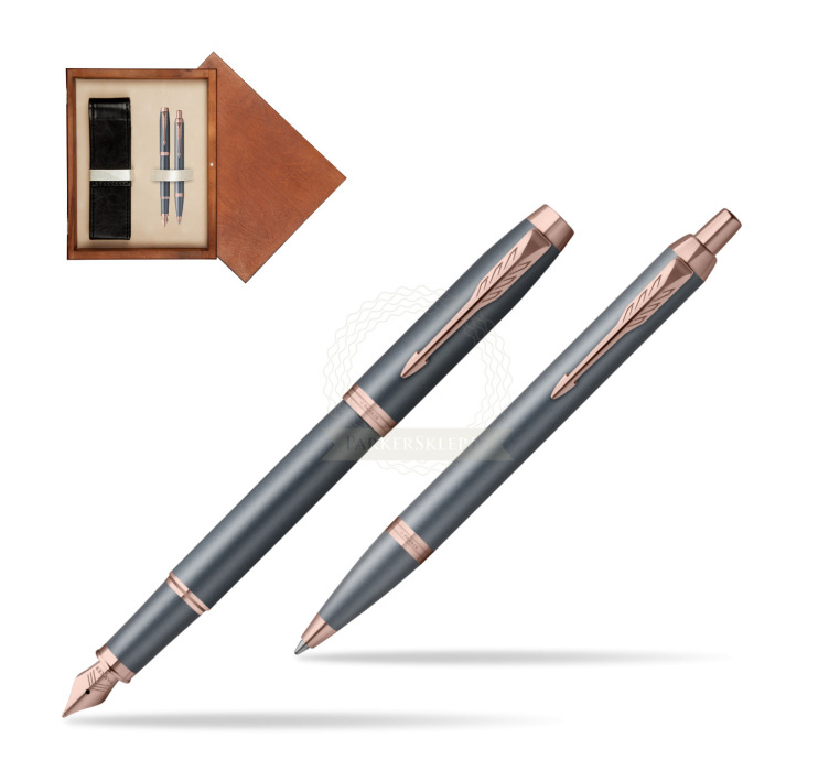Nutzen Sie jeden Moment der Inspiration mit dem neuesten Begleiter auf Ihrer kreativen Reise – der Parker IM Finishing Touch Kollektion. Ein Premium-Schreibgerät, das für Menschen entworfen wurde, die Schreiben als die höchste Form des Ausdrucks betrachten. Mit ihm wird alltägliches Schreiben zu einem besonderen Erlebnis. Es eignet sich ideal zum Führen eines Tagebuchs sowie zum Festhalten von Gedanken oder Ideen. Jedes Set ist in drei modernen Ausführungen erhältlich, die zarte Satinfarbtöne mit warmen metallischen Elementen verbinden und so Ihre innere Welt inspirieren. Die Kollektion bietet Personalisierung durch drei Schreibvarianten, von denen jede Komfort, Kontrolle und Langlebigkeit bei langen, intensiven Schreibsitzungen gewährleistet. Geliefert werden sie in einer eleganten Geschenkverpackung – eine inspirierende Geschenkidee für einen geliebten Menschen oder für sich selbst. Das tief graublaue Finish wird durch Details in Roségold akzentuiert.