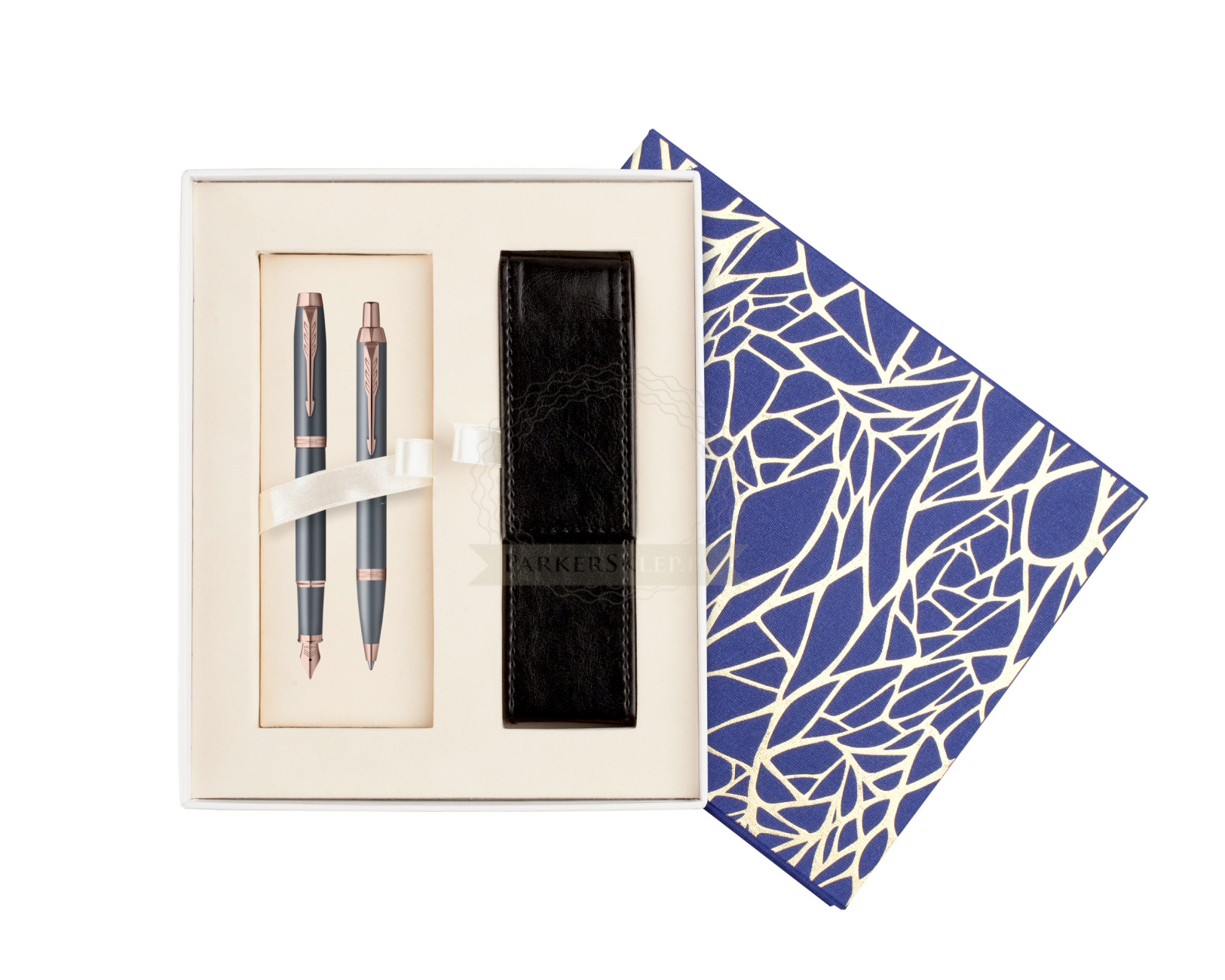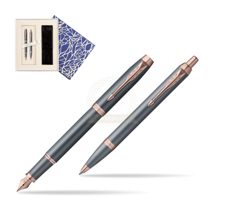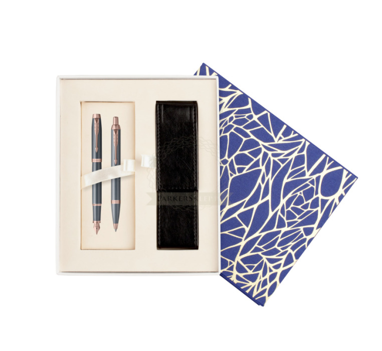 Nutzen Sie jeden Moment der Inspiration mit dem neuesten Begleiter auf Ihrer kreativen Reise – der Parker IM Finishing Touch Kollektion. Ein Premium-Schreibgerät, das für Menschen entworfen wurde, die Schreiben als die höchste Form des Ausdrucks betrachten. Mit ihm wird alltägliches Schreiben zu einem besonderen Erlebnis. Es eignet sich ideal zum Führen eines Tagebuchs sowie zum Festhalten von Gedanken oder Ideen. Jedes Set ist in drei modernen Ausführungen erhältlich, die zarte Satinfarbtöne mit warmen metallischen Elementen verbinden und so Ihre innere Welt inspirieren. Die Kollektion bietet Personalisierung durch drei Schreibvarianten, von denen jede Komfort, Kontrolle und Langlebigkeit bei langen, intensiven Schreibsitzungen gewährleistet. Geliefert werden sie in einer eleganten Geschenkverpackung – eine inspirierende Geschenkidee für einen geliebten Menschen oder für sich selbst. Das tief graublaue Finish wird durch Details in Roségold akzentuiert.
