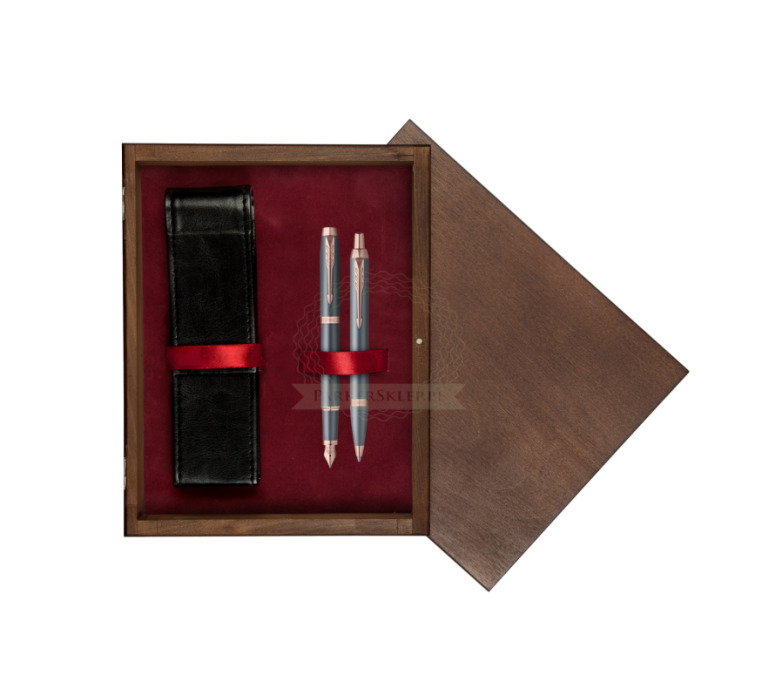Nutzen Sie jeden Moment der Inspiration mit dem neuesten Begleiter auf Ihrer kreativen Reise – der Parker IM Finishing Touch Kollektion. Ein Premium-Schreibgerät, das für Menschen entworfen wurde, die Schreiben als die höchste Form des Ausdrucks betrachten. Mit ihm wird alltägliches Schreiben zu einem besonderen Erlebnis. Es eignet sich ideal zum Führen eines Tagebuchs sowie zum Festhalten von Gedanken oder Ideen. Jedes Set ist in drei modernen Ausführungen erhältlich, die zarte Satinfarbtöne mit warmen metallischen Elementen verbinden und so Ihre innere Welt inspirieren. Die Kollektion bietet Personalisierung durch drei Schreibvarianten, von denen jede Komfort, Kontrolle und Langlebigkeit bei langen, intensiven Schreibsitzungen gewährleistet. Geliefert werden sie in einer eleganten Geschenkverpackung – eine inspirierende Geschenkidee für einen geliebten Menschen oder für sich selbst. Das tief graublaue Finish wird durch Details in Roségold akzentuiert.