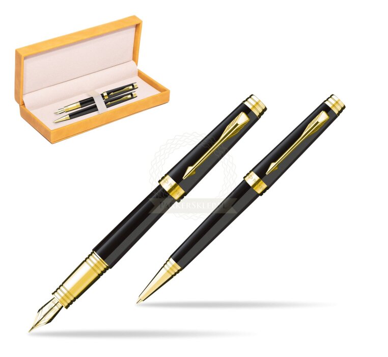 Parker Premier Black Lacquer GT Fountain Pen + Parker Premier Black Lacquer GT Ballpoint Pen in a Gift Box (S0887810_S0887840_165YELL)