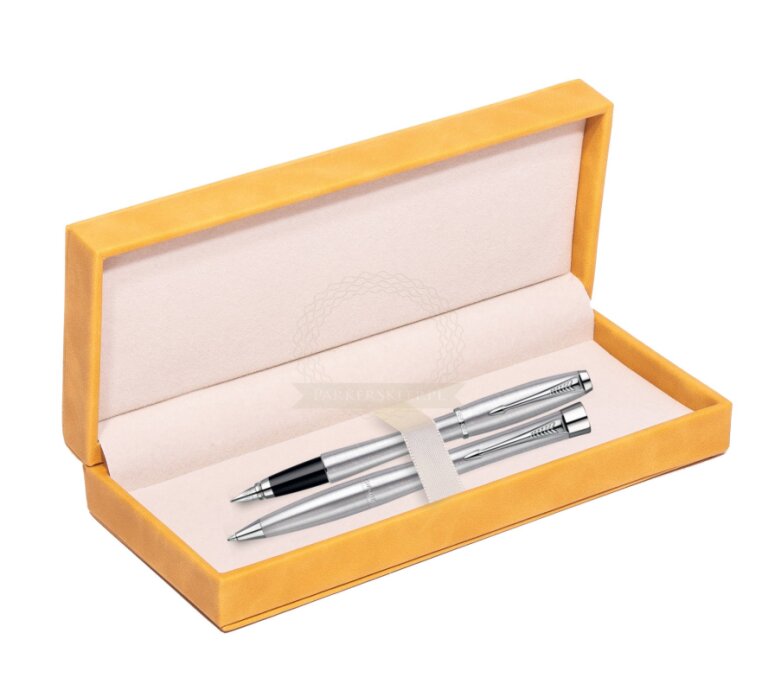 We offer to You Parker special gift box which contains Urban Metro Classic Metallic CT Fountain Pen + Urban Classic Metro Metallic CT Ballpoint Pen. Urban is a cool, new generation pen that redefines modern writing and reinvents the rules. It combines ergonomics with art to give an unconventional bullet shape with perfect weight and balance. Where image is everything and quality is key, choose a modern pen for a modern life. Urban – engineered to impress, designed to perform. Set is ideal as a gift for everyone on all kinds of occasions like birthdays or as a Parker Christmas gift. This set is perfect for all companies who wants to give Parker gifts for their employees, partners or investors. Once you feel the grace and fluidity in writing of this product you can get Rollerball Pen matching to the set. This Parker Fountain Pen can be refilled with every Parker Ink cartridges or by Parker Ink in bottle. Parker Ballpoint Pen can be refilled with every Parker Ballpoint refill and Fountain Pen can be refilled with Parker Ink in bottle or Ink cartridges. Chrome with a lightly brushed aspect finish, chromed trims. Quinkflow® technology for a smoother, cleaner & more consistent writing performance, in a word the greatest PARKER ballpoint ever. Nib in stainless steel for superior resistance and durability. Designed to provide an optimal writing angle for both right- and left-handed writers. This Parker Ballpoint Pen comes with a Ballpoint refill is in random colour Black or blue and blue Fountain Pen Ink cartridge. Presented in its PARKER special gift box designed for two Parker products.