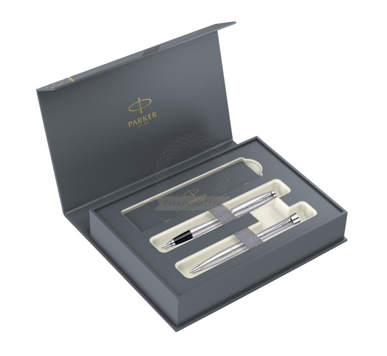 We offer to You Parker special gift box which contains Urban Metro Classic Metallic CT Fountain Pen + Urban Classic Metro Metallic CT Ballpoint Pen. Urban is a cool, new generation pen that redefines modern writing and reinvents the rules. It combines ergonomics with art to give an unconventional bullet shape with perfect weight and balance. Where image is everything and quality is key, choose a modern pen for a modern life. Urban – engineered to impress, designed to perform. Set is ideal as a gift for everyone on all kinds of occasions like birthdays or as a Parker Christmas gift. This set is perfect for all companies who wants to give Parker gifts for their employees, partners or investors. Once you feel the grace and fluidity in writing of this product you can get Rollerball Pen matching to the set. This Parker Fountain Pen can be refilled with every Parker Ink cartridges or by Parker Ink in bottle. Parker Ballpoint Pen can be refilled with every Parker Ballpoint refill and Fountain Pen can be refilled with Parker Ink in bottle or Ink cartridges. Chrome with a lightly brushed aspect finish, chromed trims. Quinkflow® technology for a smoother, cleaner & more consistent writing performance, in a word the greatest PARKER ballpoint ever. Nib in stainless steel for superior resistance and durability. Designed to provide an optimal writing angle for both right- and left-handed writers. This Parker Ballpoint Pen comes with a Ballpoint refill is in random colour Black or blue and blue Fountain Pen Ink cartridge. Presented in its PARKER special gift box designed for two Parker products.