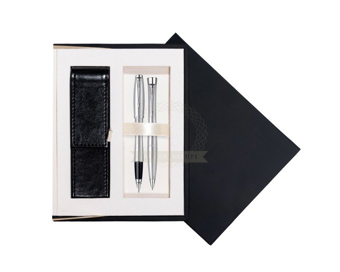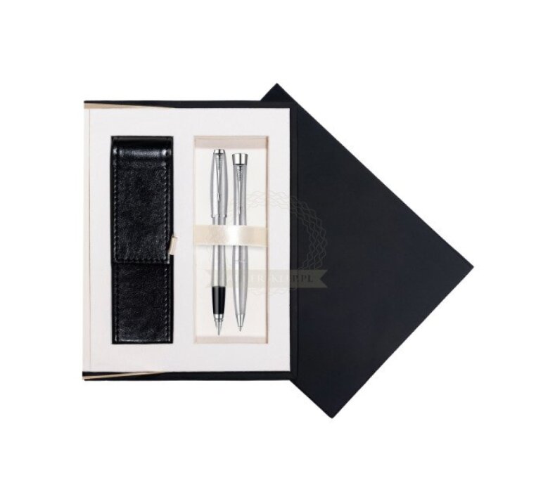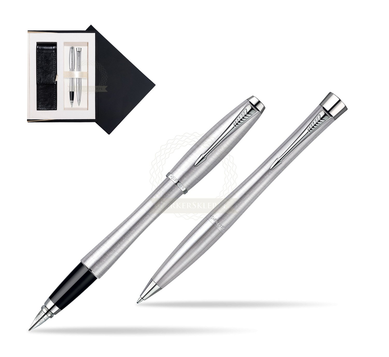 We offer to You Parker special gift box which contains Urban Metro Classic Metallic CT Fountain Pen + Urban Classic Metro Metallic CT Ballpoint Pen. Urban is a cool, new generation pen that redefines modern writing and reinvents the rules. It combines ergonomics with art to give an unconventional bullet shape with perfect weight and balance. Where image is everything and quality is key, choose a modern pen for a modern life. Urban – engineered to impress, designed to perform. Set is ideal as a gift for everyone on all kinds of occasions like birthdays or as a Parker Christmas gift. This set is perfect for all companies who wants to give Parker gifts for their employees, partners or investors. Once you feel the grace and fluidity in writing of this product you can get Rollerball Pen matching to the set. This Parker Fountain Pen can be refilled with every Parker Ink cartridges or by Parker Ink in bottle. Parker Ballpoint Pen can be refilled with every Parker Ballpoint refill and Fountain Pen can be refilled with Parker Ink in bottle or Ink cartridges. Chrome with a lightly brushed aspect finish, chromed trims. Quinkflow® technology for a smoother, cleaner & more consistent writing performance, in a word the greatest PARKER ballpoint ever. Nib in stainless steel for superior resistance and durability. Designed to provide an optimal writing angle for both right- and left-handed writers. This Parker Ballpoint Pen comes with a Ballpoint refill is in random colour Black or blue and blue Fountain Pen Ink cartridge. Presented in its PARKER special gift box designed for two Parker products.