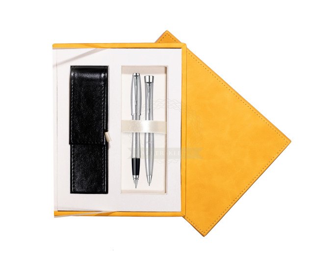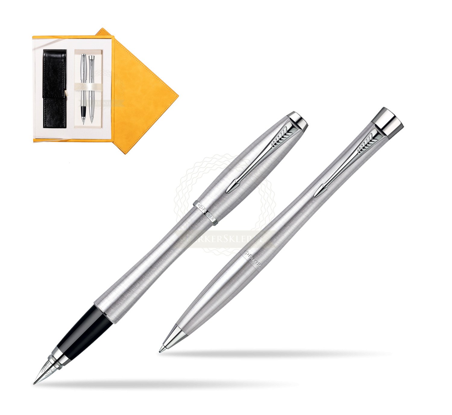 Parker Urban Classic Metro Metallic CT Füllfederhalter + Parker Urban Classic Metro Metallic CT Kugelschreiber in a Gift Box (S0850670_S0767120_265YELL)