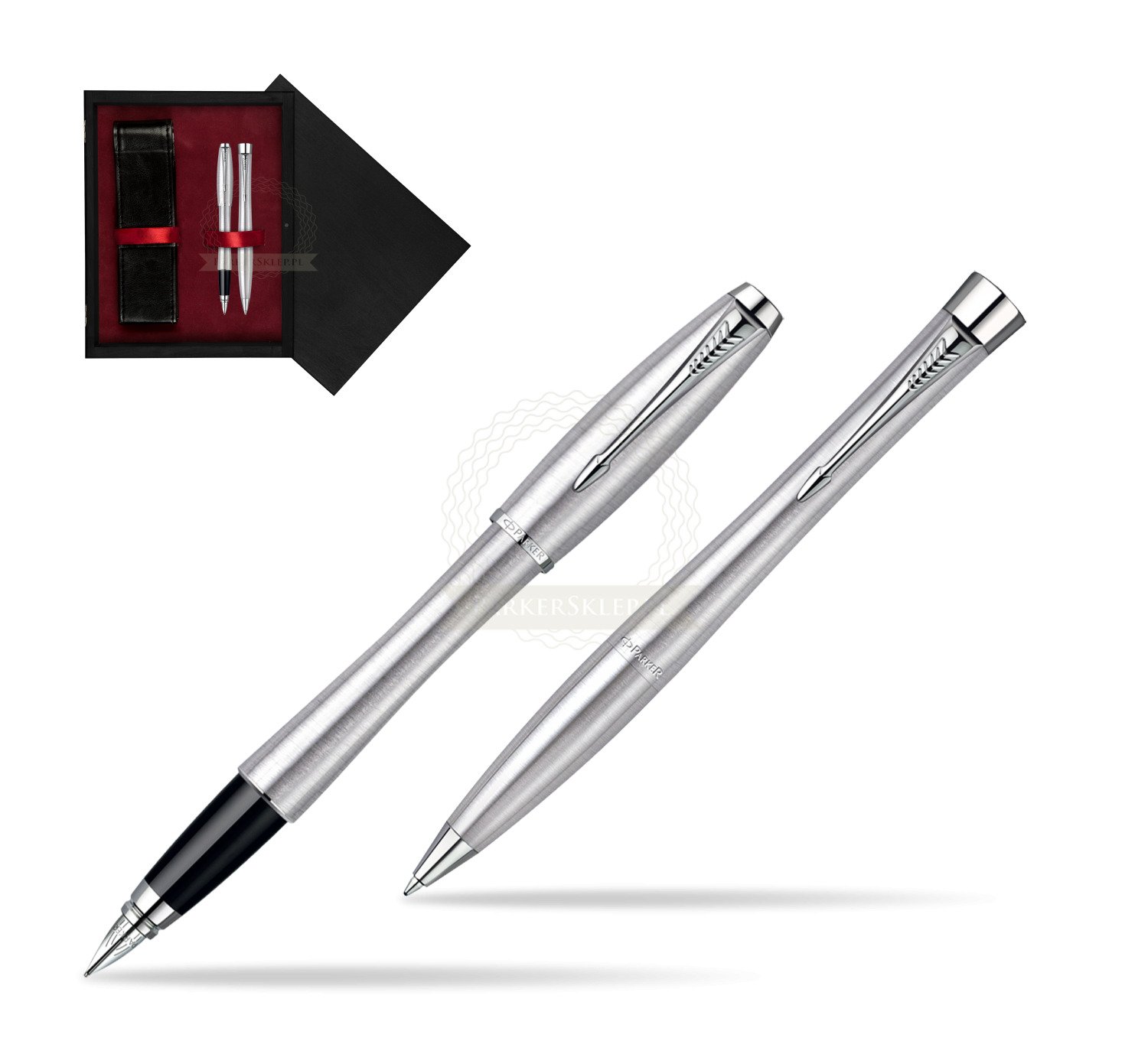 We offer to You Parker special gift box which contains Urban Metro Classic Metallic CT Fountain Pen + Urban Classic Metro Metallic CT Ballpoint Pen. Urban is a cool, new generation pen that redefines modern writing and reinvents the rules. It combines ergonomics with art to give an unconventional bullet shape with perfect weight and balance. Where image is everything and quality is key, choose a modern pen for a modern life. Urban – engineered to impress, designed to perform. Set is ideal as a gift for everyone on all kinds of occasions like birthdays or as a Parker Christmas gift. This set is perfect for all companies who wants to give Parker gifts for their employees, partners or investors. Once you feel the grace and fluidity in writing of this product you can get Rollerball Pen matching to the set. This Parker Fountain Pen can be refilled with every Parker Ink cartridges or by Parker Ink in bottle. Parker Ballpoint Pen can be refilled with every Parker Ballpoint refill and Fountain Pen can be refilled with Parker Ink in bottle or Ink cartridges. Chrome with a lightly brushed aspect finish, chromed trims. Quinkflow® technology for a smoother, cleaner & more consistent writing performance, in a word the greatest PARKER ballpoint ever. Nib in stainless steel for superior resistance and durability. Designed to provide an optimal writing angle for both right- and left-handed writers. This Parker Ballpoint Pen comes with a Ballpoint refill is in random colour Black or blue and blue Fountain Pen Ink cartridge. Presented in its PARKER special gift box designed for two Parker products.
