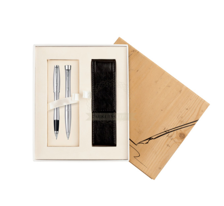 We offer to You Parker special gift box which contains Urban Metro Classic Metallic CT Fountain Pen + Urban Classic Metro Metallic CT Ballpoint Pen. Urban is a cool, new generation pen that redefines modern writing and reinvents the rules. It combines ergonomics with art to give an unconventional bullet shape with perfect weight and balance. Where image is everything and quality is key, choose a modern pen for a modern life. Urban – engineered to impress, designed to perform. Set is ideal as a gift for everyone on all kinds of occasions like birthdays or as a Parker Christmas gift. This set is perfect for all companies who wants to give Parker gifts for their employees, partners or investors.