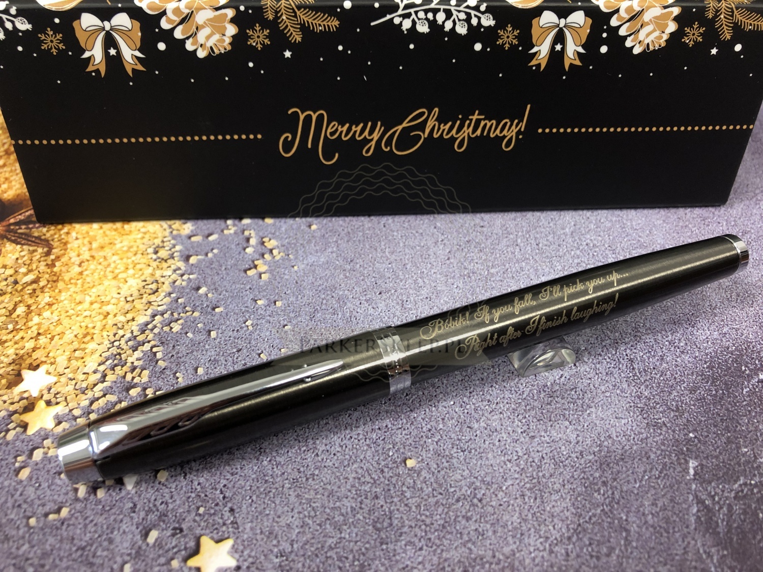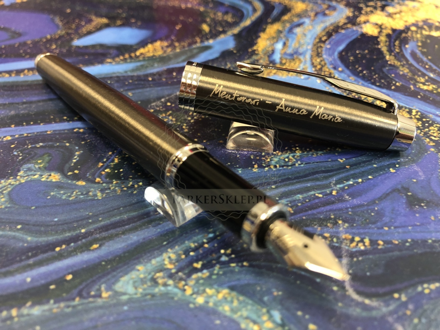 Highly professional and reliable. An ideal partner with unlimited potential, Parker IM is all at once smart, polished and established. With a durable stainless steel nib and finishes that echo the Parker legacy, every detail is refined to deliver a writing experience that is always dependable. Parker IM Dark Espresso Lacquer CT Fountain Pen is well suited as a gift for every occasions like Christmas gift or for any anniversary. Every Company can make a realy nice Parker gift out of this for employees or for advertisment purposes. You can refill this Fountain Pen with Parker Ink cartridges or Parker Ink in bottle. On our website you can find Rollerball Pen and Ballpoint Pen matching the set. Dark espresso with a circular linishing & varnish complemented with chrome finish trims. Packaged in a Parker gift box. This Fountain Pen comes with nib size F or M. One ink cartridge included in random blue or black colour.