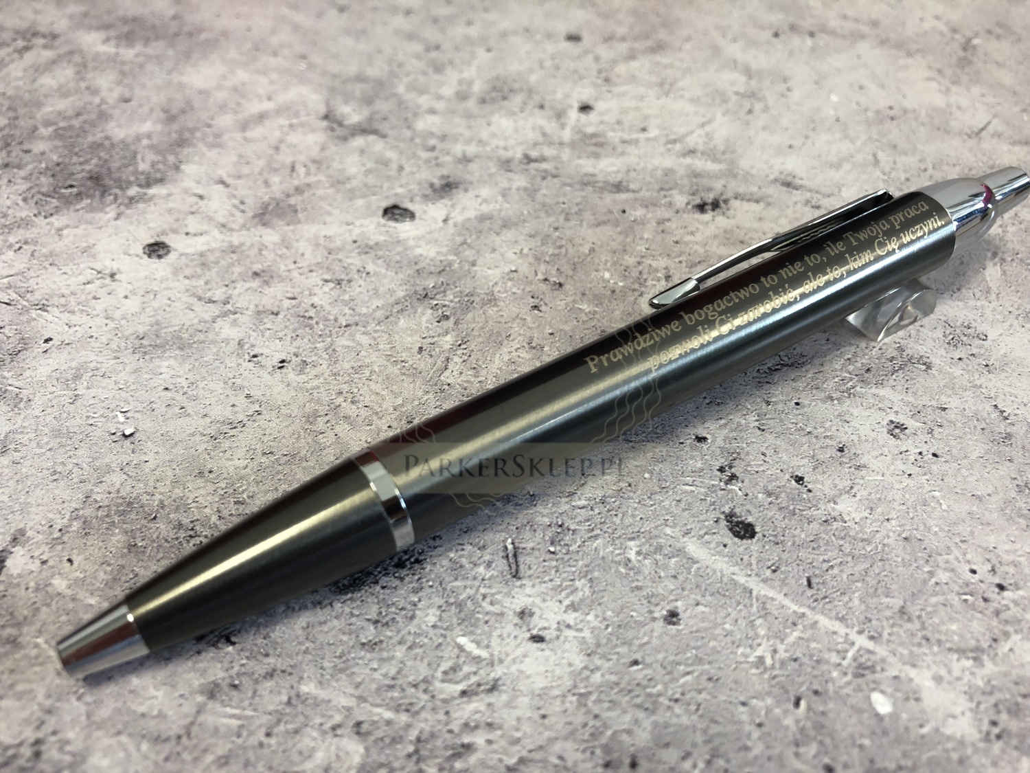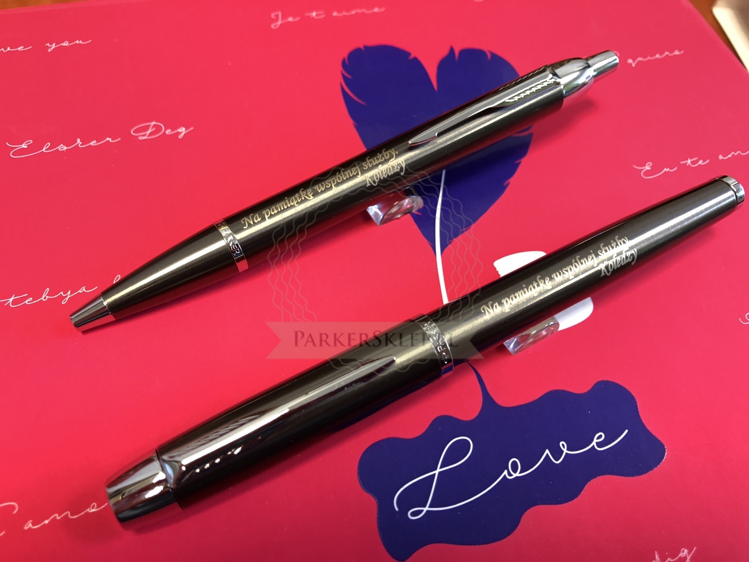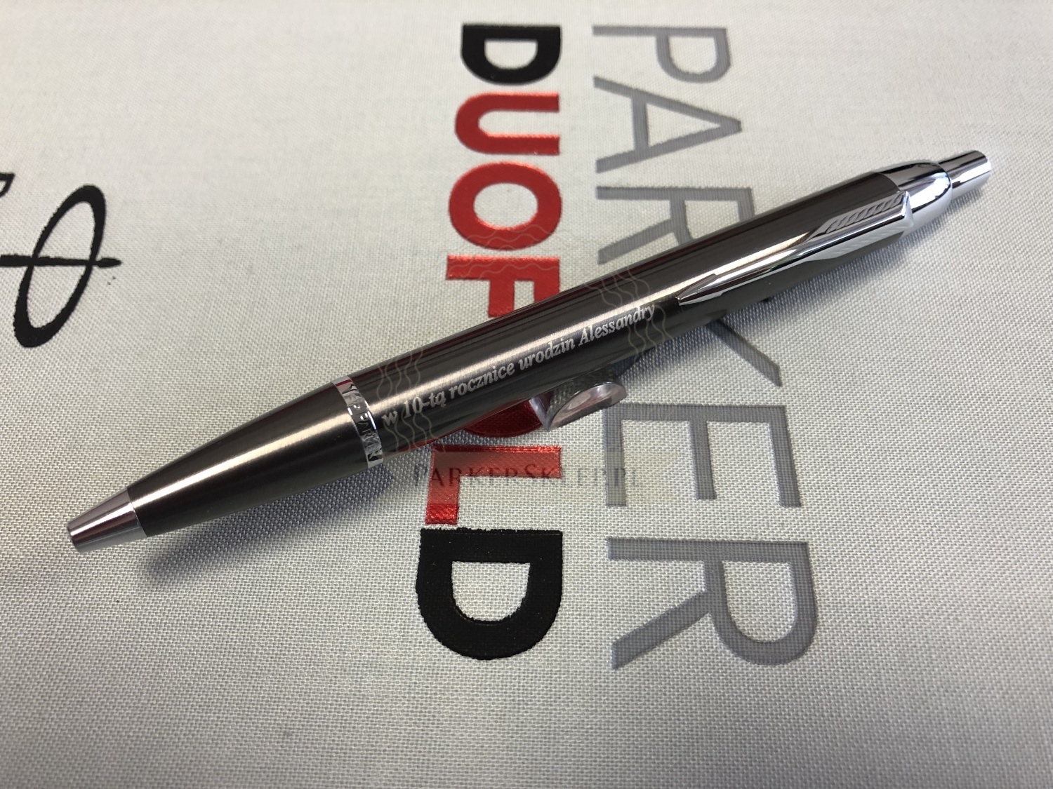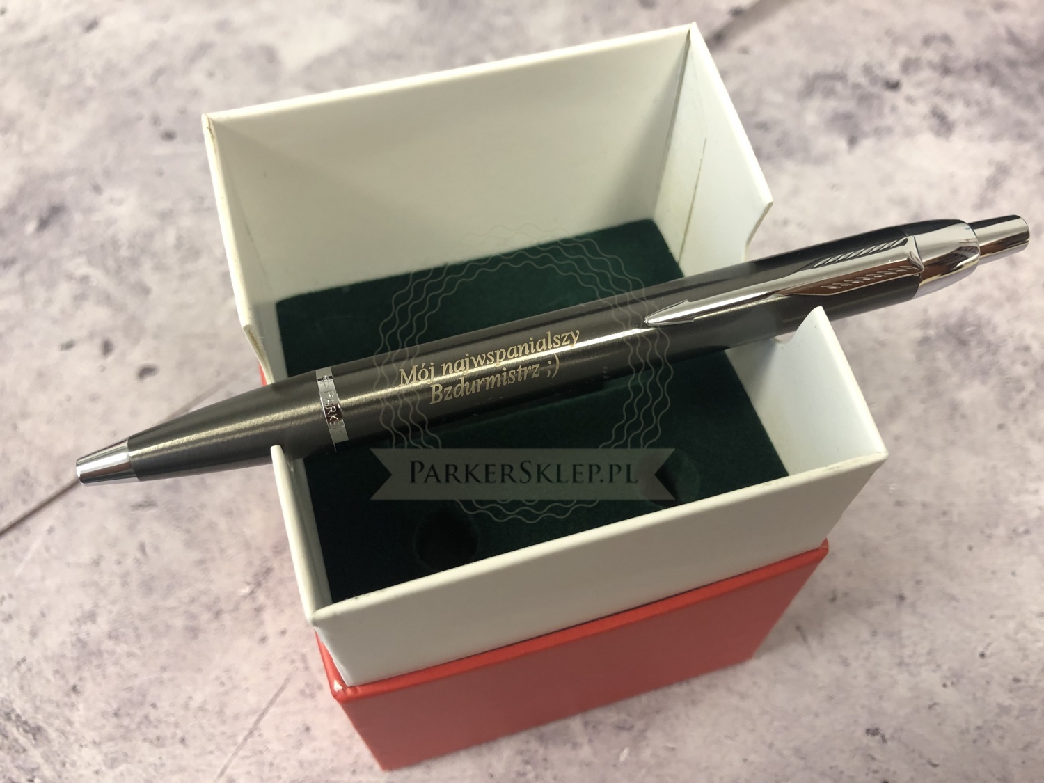 Parker IM, with its smart choice of high quality finishes, matches just about any style or mood you’re in. Focused on comfort and simple, high-performance functionality, its tapered contemporary shape teams up with the versatile appeal of metal to give instant modern style from PARKER. Parker IM Gun Metal CT Ballpoint Pen is ideal as a gift for everyone on all kinds of occasions like birthdays or as a Parker Christmas gift. This product is perfect for all companies who wants to give Parker gifts for their employees, partners or investors. Once you feel the grace and fluidity in writing of this product you can get Fountain Pen and Rollerball Pen matching to the set. This Parker Ballpoint Pen can be refilled with every Parker Ballpoint refill. In brushed metal, with a glossy gun metal varnish finish with chromed trims. Quinkflow® technology for a smoother, cleaner & more consistent writing performance, in a word the greatest PARKER ballpoint ever. This Parker Ballpoint Pen comes with a Ballpoint refill in random colour Black or blue. Presented in its PARKER gift box.