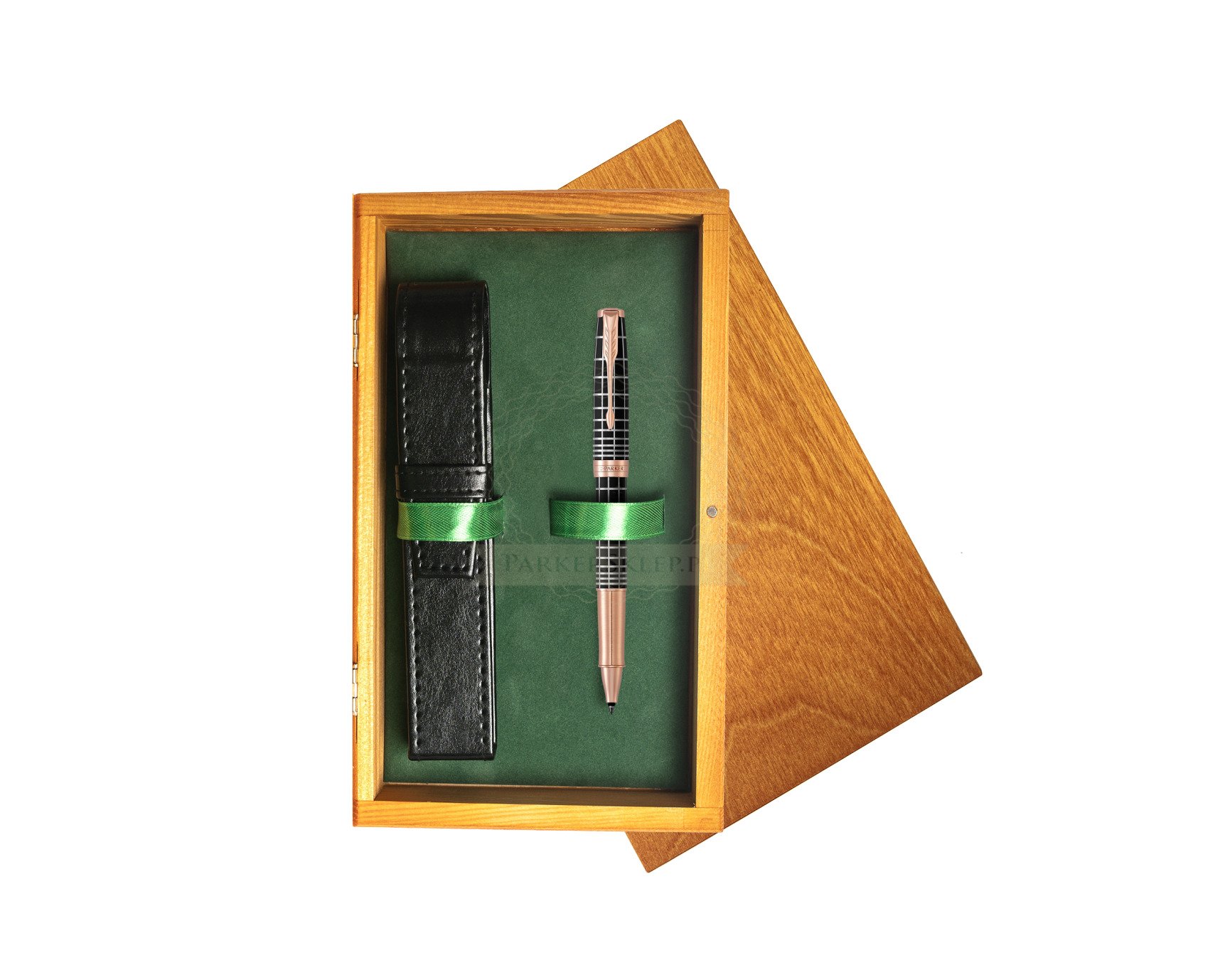 This Rollerball Pen is a classic expression of refined style, Sonnet is Parker’s symbol of elegance for everyone. With an array of designs, including the enduring Ciselé pattern, every intricate detail is skillfully executed to bring sophistication to every writing occasion. This product is best suited for people who want to be recognize but not perceived as fancy. Every Company can make a realy nice Parker gift out of this for employees, partners or investors. You can refill this Rollerball with every Parker Rollerball refill. On our website you can find Fountain Pen and Ballpoint Pen matching the set. Coated with matt brown resin with a contemporary facetted pattern expertly etched. Complemented with rose gold finish trims and an 18k solid golfd nib covered with a rose gold finish. Packaged in a PARKER premium gift box. This Rollerball Pen comes with one rollerball refill in random colour blue or black.