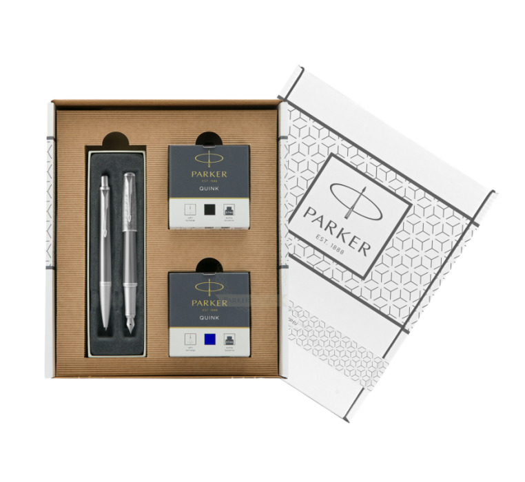Parker Urban Premium Silvered Powder CT Fountain Pen + Ballpoint Pen in a Gift Box in classic box brown