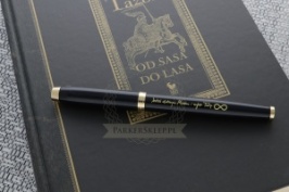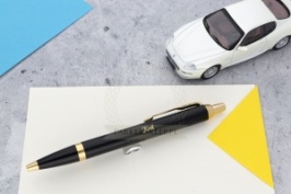 Glossy black lacquer complemented with gold finish trims. Packaged in a Parker gift box. This Ballpoint Pen comes with one ballpoint refill in random colour blue or black.