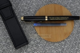Parker IM Black Gold Finish Trim GT Fountain Pen is well suited as a gift for every occasions like Christmas gift or for any anniversary. Every Company can make a realy nice Parker gift out of this for employees or for advertisment purposes. You can refill this Fountain Pen with Parker Ink cartridges or Parker Ink in bottle.