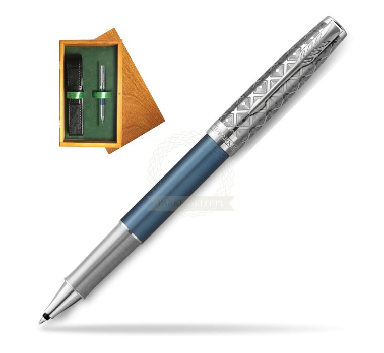 Sonnet Premium Metal & Blue CT Rollerball Pen single wooden box Black Single Ecru