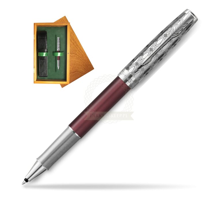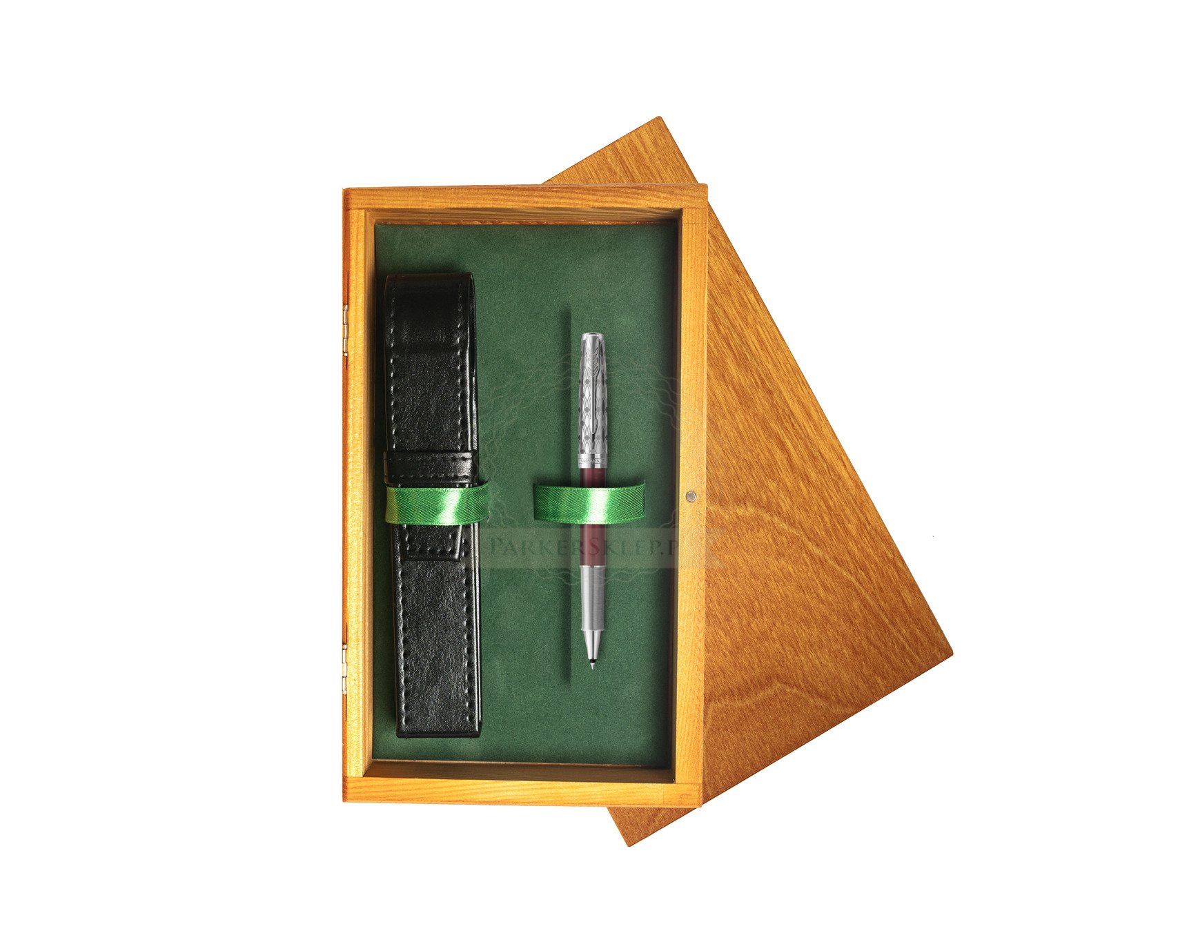 Sonnet Premium Metal & Red CT Rollerball Pen single wooden box Black Single Ecru