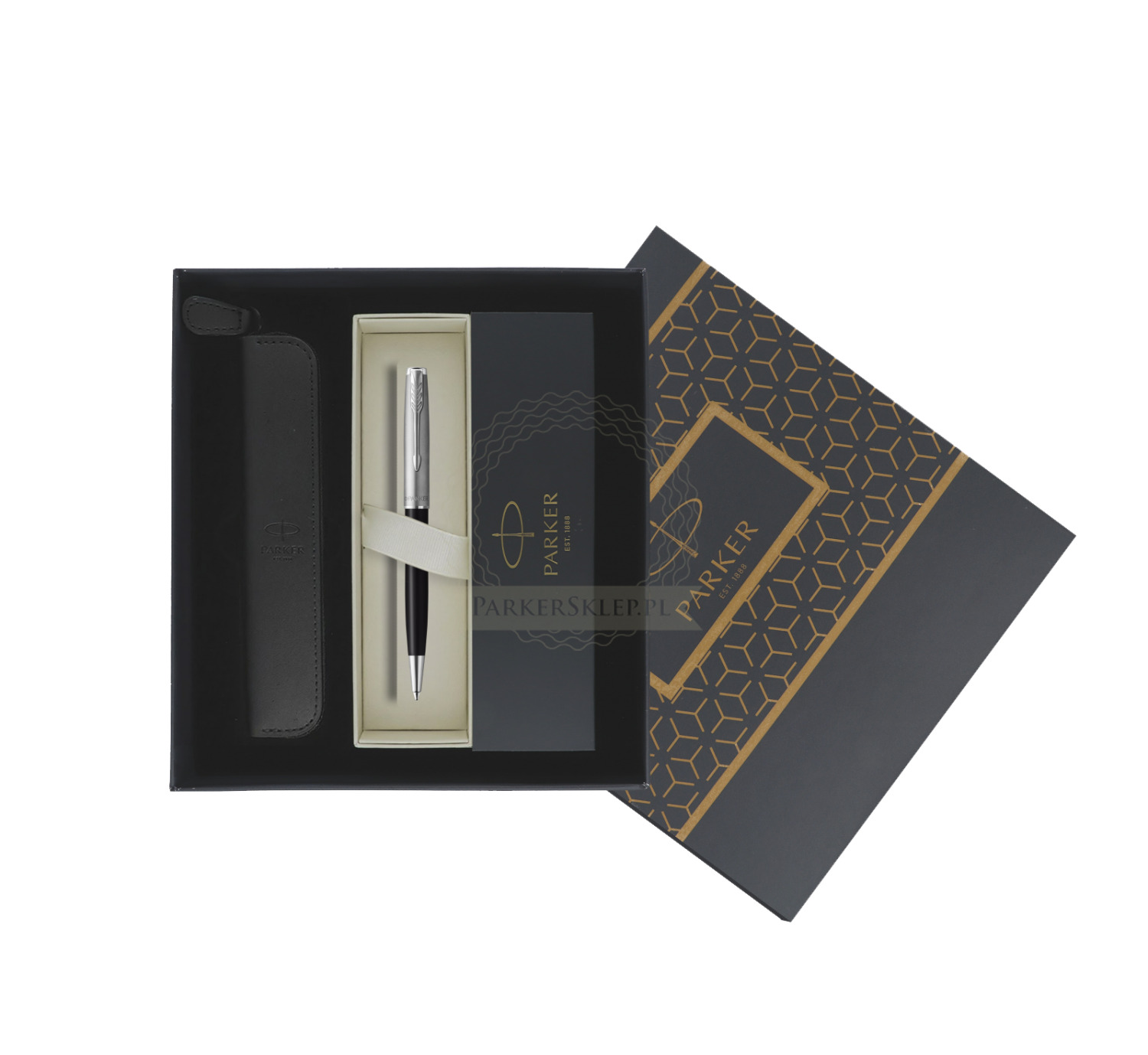 Cap made from stainless steel and pen's body lacquered to black with accents covered with palladium and characteristic clip in the shape of PARKER arrow.