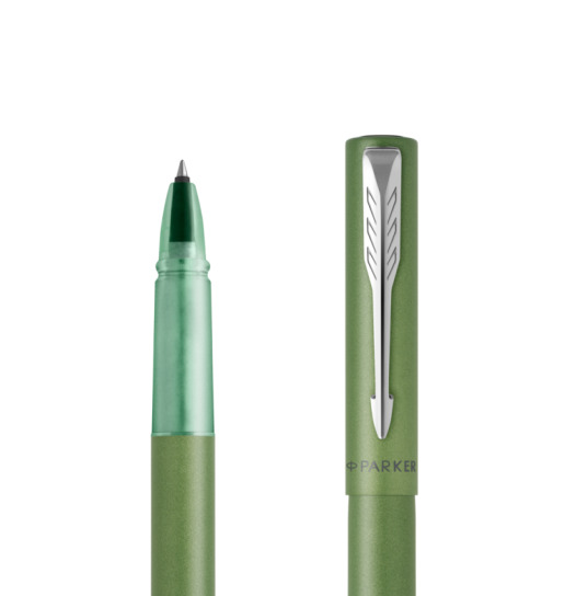 Stylish design meets reliable performance, Vector XL Rollerball Pen suits any modern lifestyle. The metallic matte green finish is complemented by chrome trims and the signature PARKER arrow clip. Featuring a unique transparent shell revealing the inner workings of the pen, it is finished by an incredibly smooth rollerball tip providing fluid, skip-free writing, to deliver a writing experience that is comfortable and consistent. Presented in a PARKER gift box. Metallic matte green finish complemented by chrome trims and the signature PARKER arrow clip.