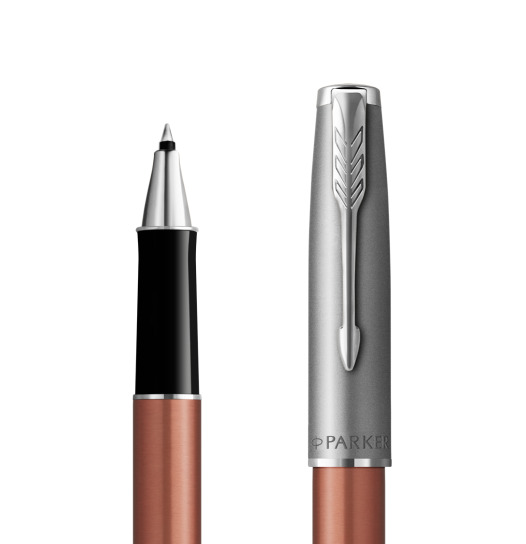 Sonnet Essentials rollerball pen lacquered in orange color is a classic expression of sophisticated style and symbol of elegance of Parker brand. Each rollerball pen is perfectly balanced and equipped in spherical smooth tip which offers smoother and more reliable writing with no interruptions. Assembled by hand and controlled with regard to reliability of elements - each subtle detail was exquisitely made, so it gives unique style and sohpisticated handwriting. You can use it with Parker refills for rollerball pens. Parker Sonnet rollerball pen, metal and orange lacquer with palladium finishings. Cap made from stainless steel and pen's body lacquered to orange with accents covered with palladium and characteristic clip in the shape of PARKER arrow.
