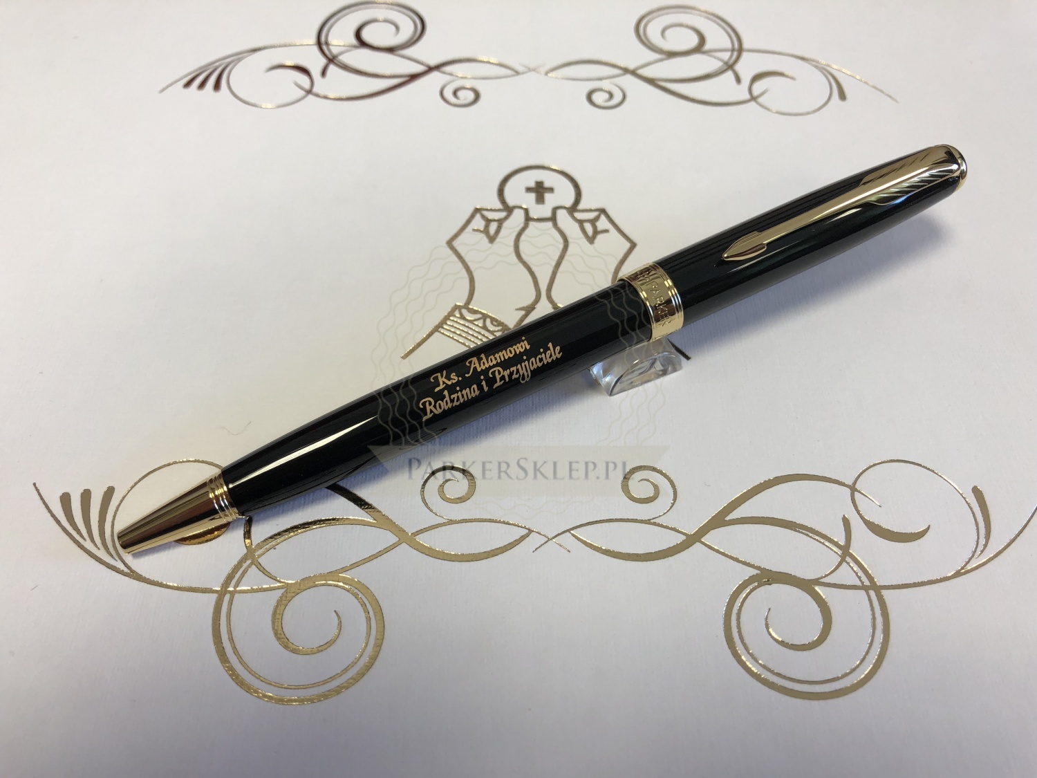 Sonnet’s contemporary elegance, fine styling and modern finishing sit comfortably with PARKER’s design heritage, epitomized in the exquisite detailing of the fine cut 18k gold and Stainless steel nibs, the intricate feathering of the arrow clip and the perfect balance in the hand. The Sonnet range is truly timeless … but always of the moment. Sonnet Deep Black Lacquer GT Ballpoint Pen is ideal as a gift for everyone on all kinds of occasions like birthdays or as a Parker Christmas gift. This product is perfect for all companies who wants to give Parker gifts for their employees, partners or investors. Once you feel the grace and fluidity in writing of this product you can get Fountain Pen and Rollerball Pen matching to the set. This Parker Ballpoint Pen can be refilled with every Parker Ballpoint refill. Lacquered in a deep black glossy finish with jewel-like brilliance,overlaid with multiple layers of rich lacquer that give it its precious and silky feel, 23 carat gold plated trims. Quinkflow® technology for a smoother, cleaner & more consistent writing performance, in a word the greatest PARKER ballpoint ever. This Parker Ballpoint Pen comes with a Ballpoint refill in random colour Black or blue. Presented in its PARKER gift box.