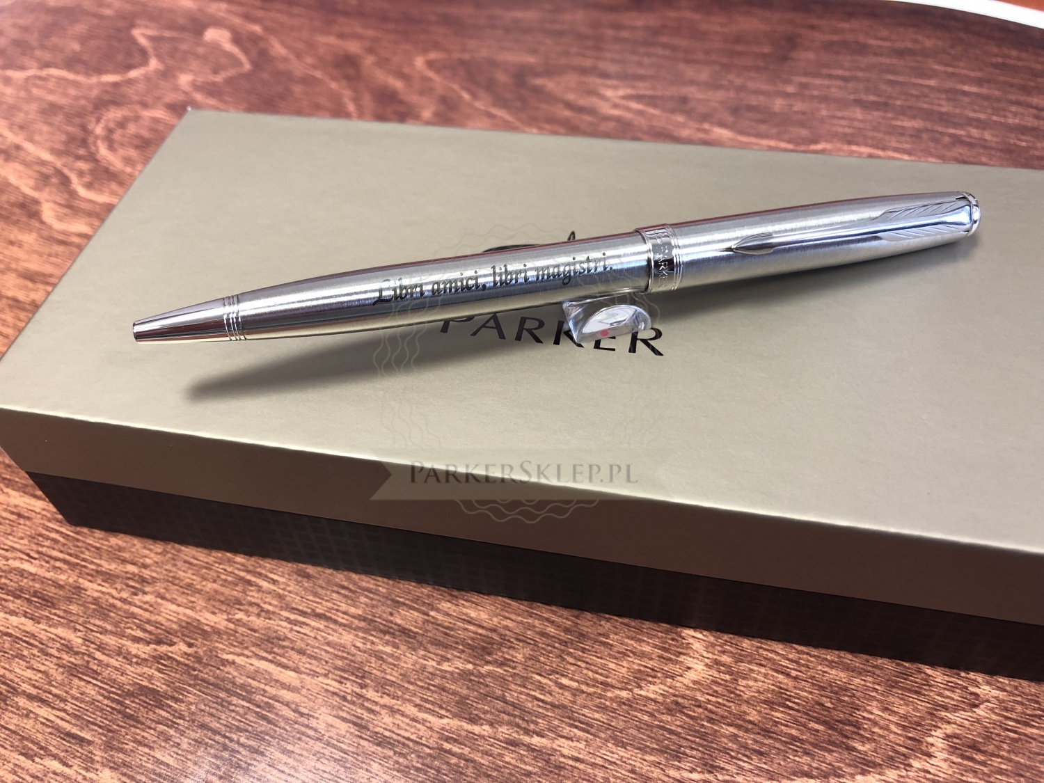 Sonnet’s contemporary elegance, fine styling and modern finishing sit comfortably with PARKER’s design heritage, epitomized in the exquisite detailing of the fine cut 18k gold and Stainless steel nibs, the intricate feathering of the arrow clip and the perfect balance in the hand. The Sonnet range is truly timeless … but always of the moment. Sonnet Stainless Steel CT Ballpoint Pen is ideal as a gift for everyone on all kinds of occasions like birthdays or as a Parker Christmas gift. This product is perfect for all companies who wants to give Parker gifts for their employees, partners or investors. Once you feel the grace and fluidity in writing of this product you can get Fountain Pen and Rollerball Pen matching to the set. This Parker Ballpoint Pen can be refilled with every Parker Ballpoint refill. Product finishin in stainless steel with mineral metallic lustre, brushed with light texture effect and polished for a smooth satin touch. High-shine nickel-palladium plated trims. Quinkflow® technology for a smoother, cleaner & more consistent writing performance, in a word the greatest PARKER ballpoint ever. This Parker Ballpoint Pen comes with a Ballpoint refill in random colour Black or blue. Presented in its PARKER gift box.